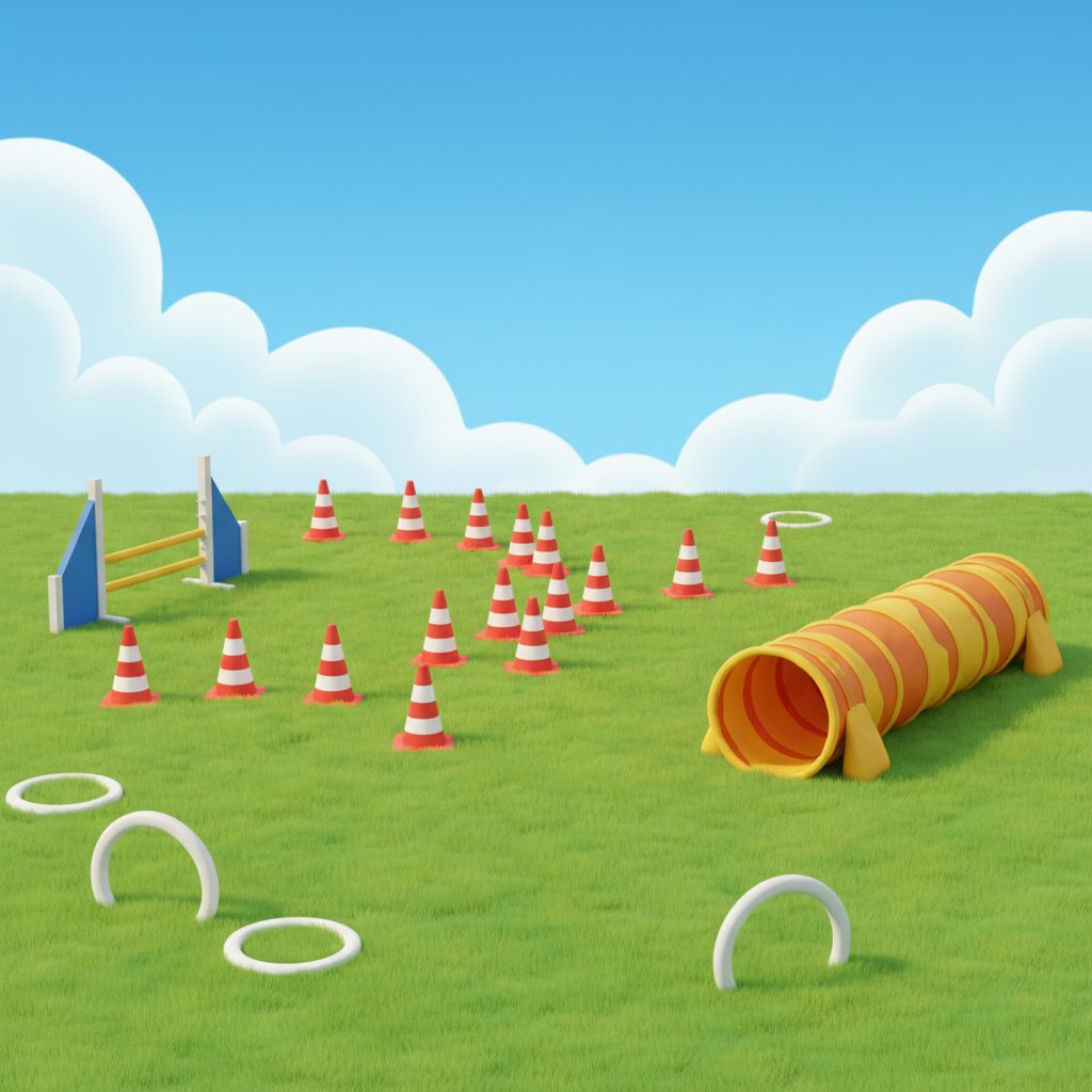Les cônes, c’est ton meilleur ami en agility. Commence large, puis rétrécis.